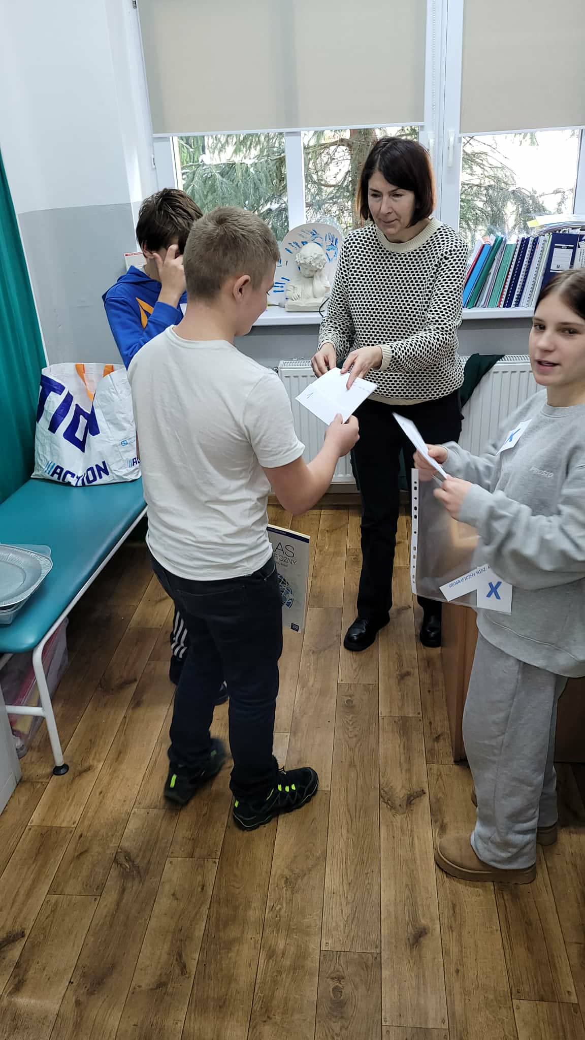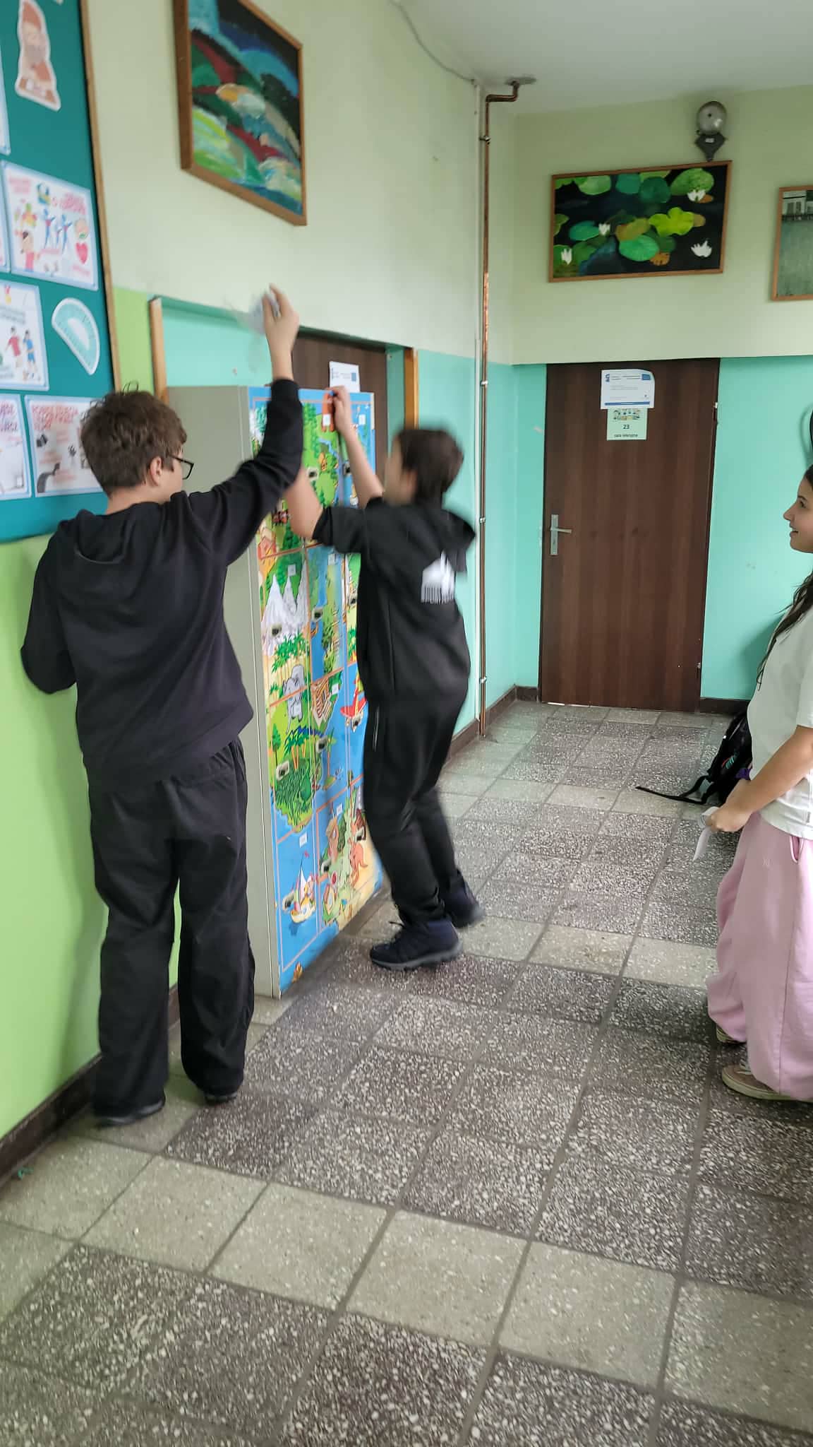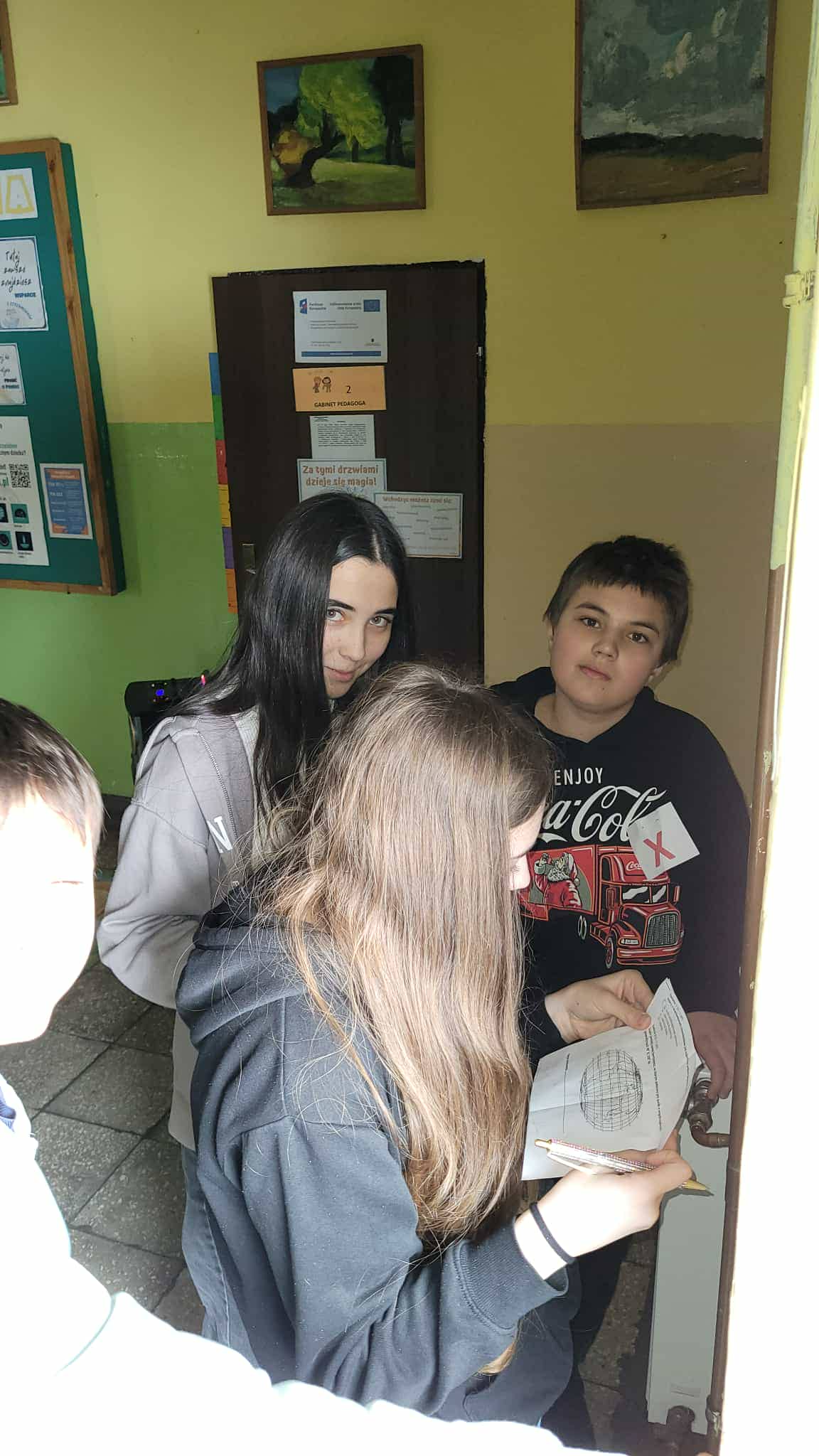 Ukryte w różnych zakamarkach szkoły (…i nie tylko…u pani dyrektor, sekretariacie, przedszkolu, bibliotece czy świetlicy…) można było znaleźć dopiero po rozwiązaniu poprzedniego zadania. Tak jak w prawdziwym Escape…tylko godzina czasu. To nie tylko zabawa dla uczniów, ale sposób sprawdzenia umiejętności i wiedzy geograficznej ogólnie zdobytej w szkole i poza nią. Lekcja geografii w formie escape school wymaga od ucznia umiejętności logicznego myślenia, współpracy, kreatywności, budowania relacji i integracji w grupie.