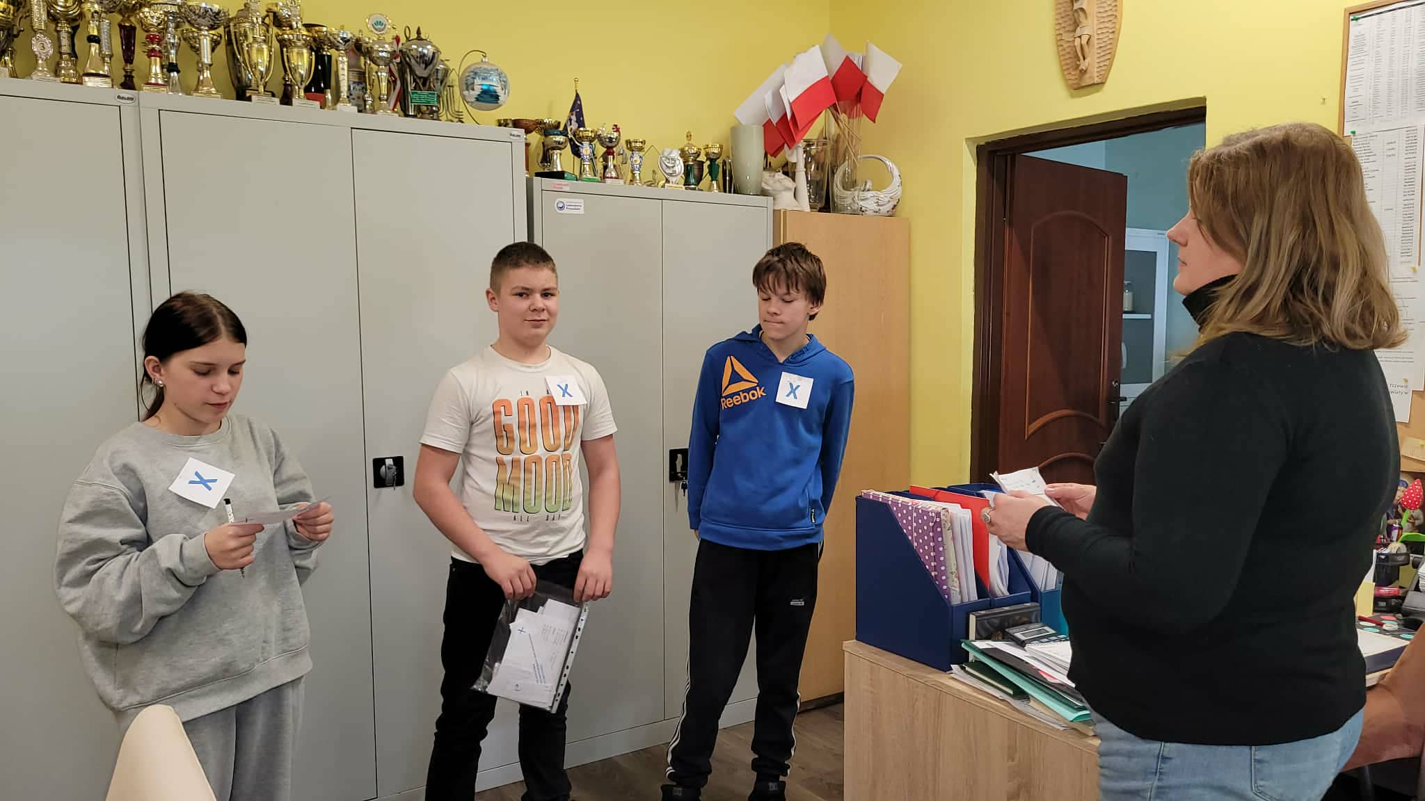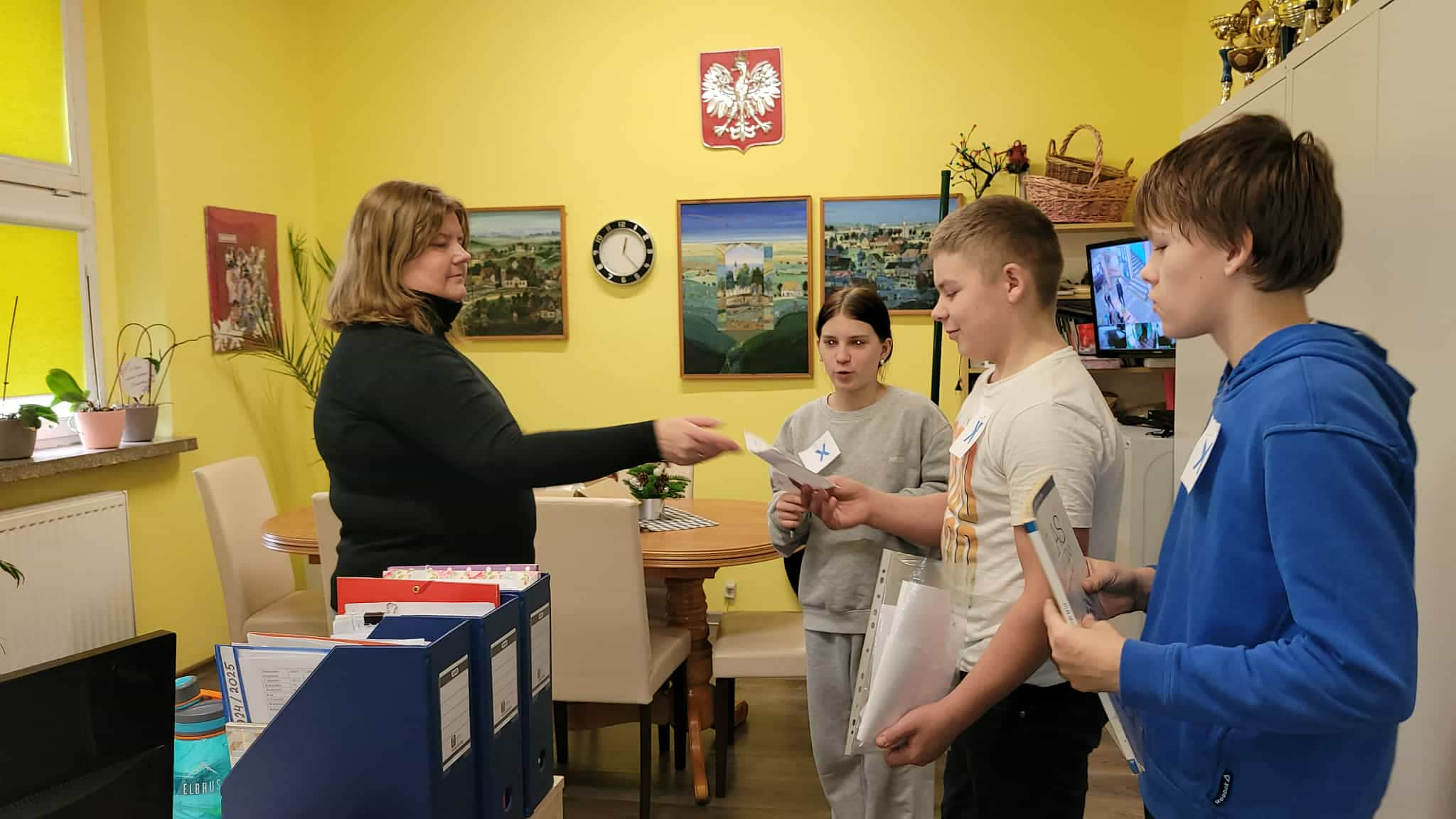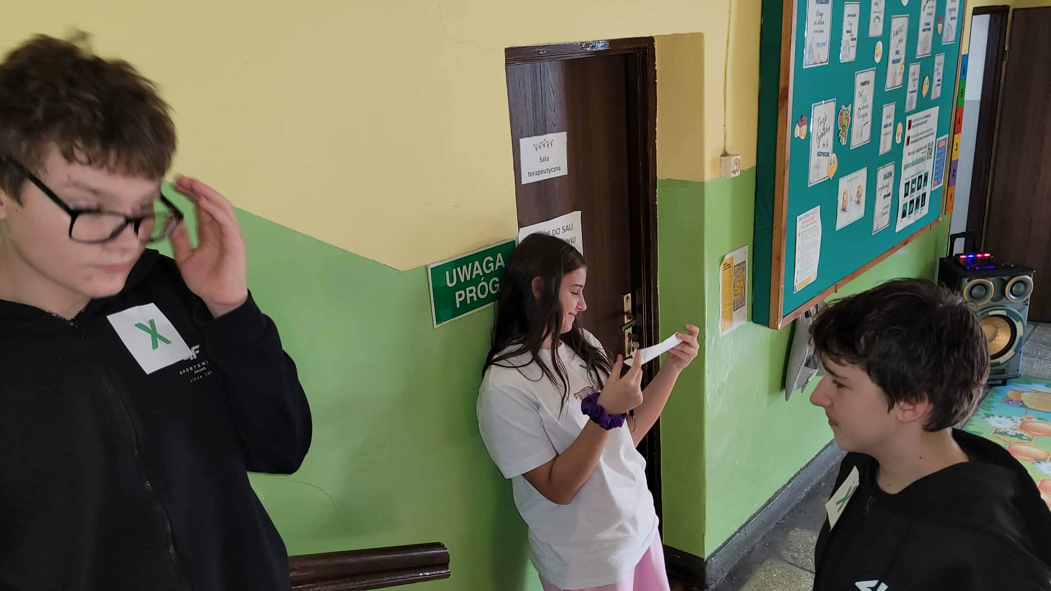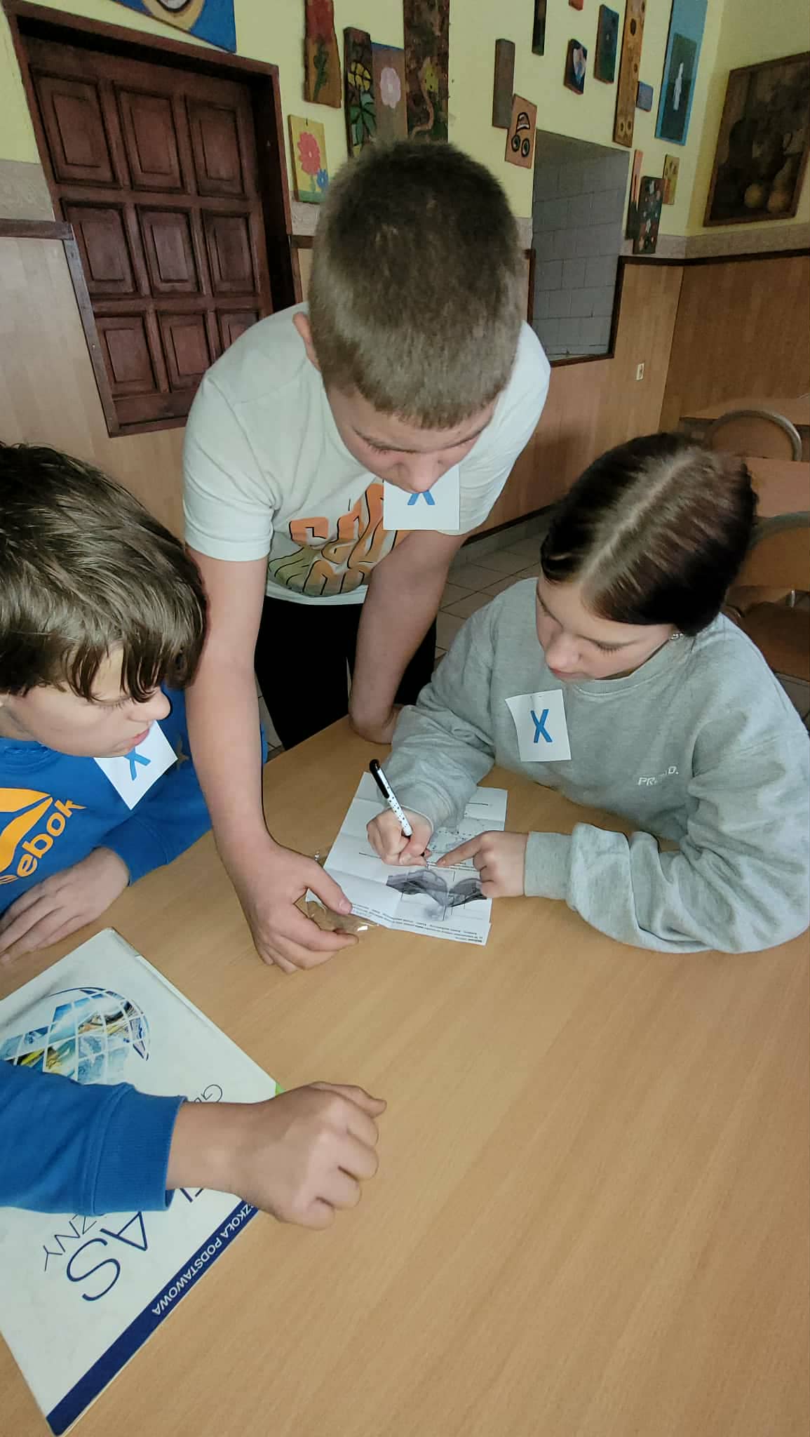 Ukryte w różnych zakamarkach szkoły (…i nie tylko…u pani dyrektor, sekretariacie, przedszkolu, bibliotece czy świetlicy…) można było znaleźć dopiero po rozwiązaniu poprzedniego zadania. Tak jak w prawdziwym Escape…tylko godzina czasu. To nie tylko zabawa dla uczniów, ale sposób sprawdzenia umiejętności i wiedzy geograficznej ogólnie zdobytej w szkole i poza nią. Lekcja geografii w formie escape school wymaga od ucznia umiejętności logicznego myślenia, współpracy, kreatywności, budowania relacji i integracji w grupie.