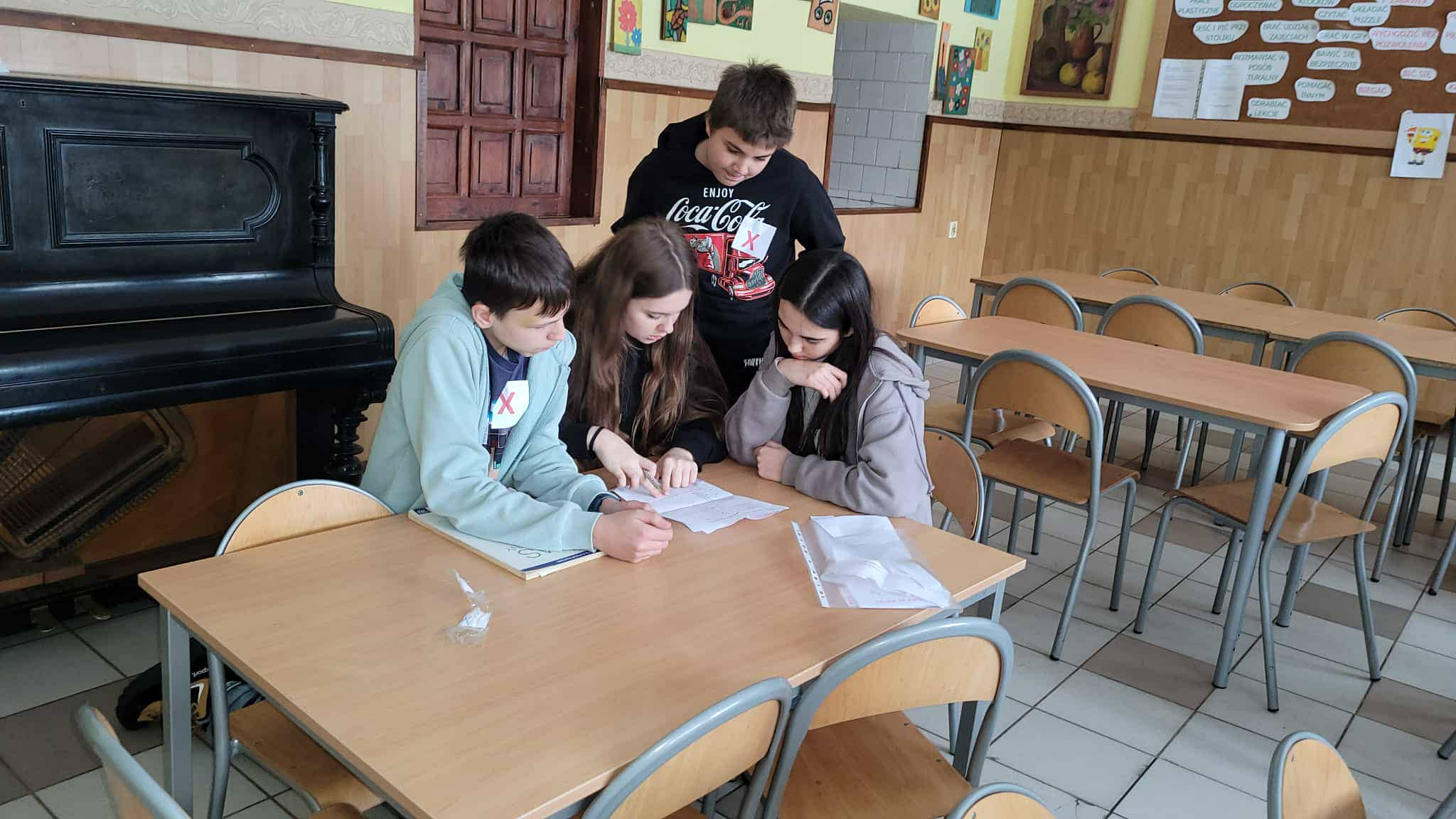 W inny niż zazwyczaj sposób podsumowaliśmy naszą wiedzę geograficzną. Klasę podzielono na trzy grupy, których zadaniem było odnalezienie i rozwiązanie zadań geograficznych. Odszukanie i otrzymanie zadań nie było proste.
