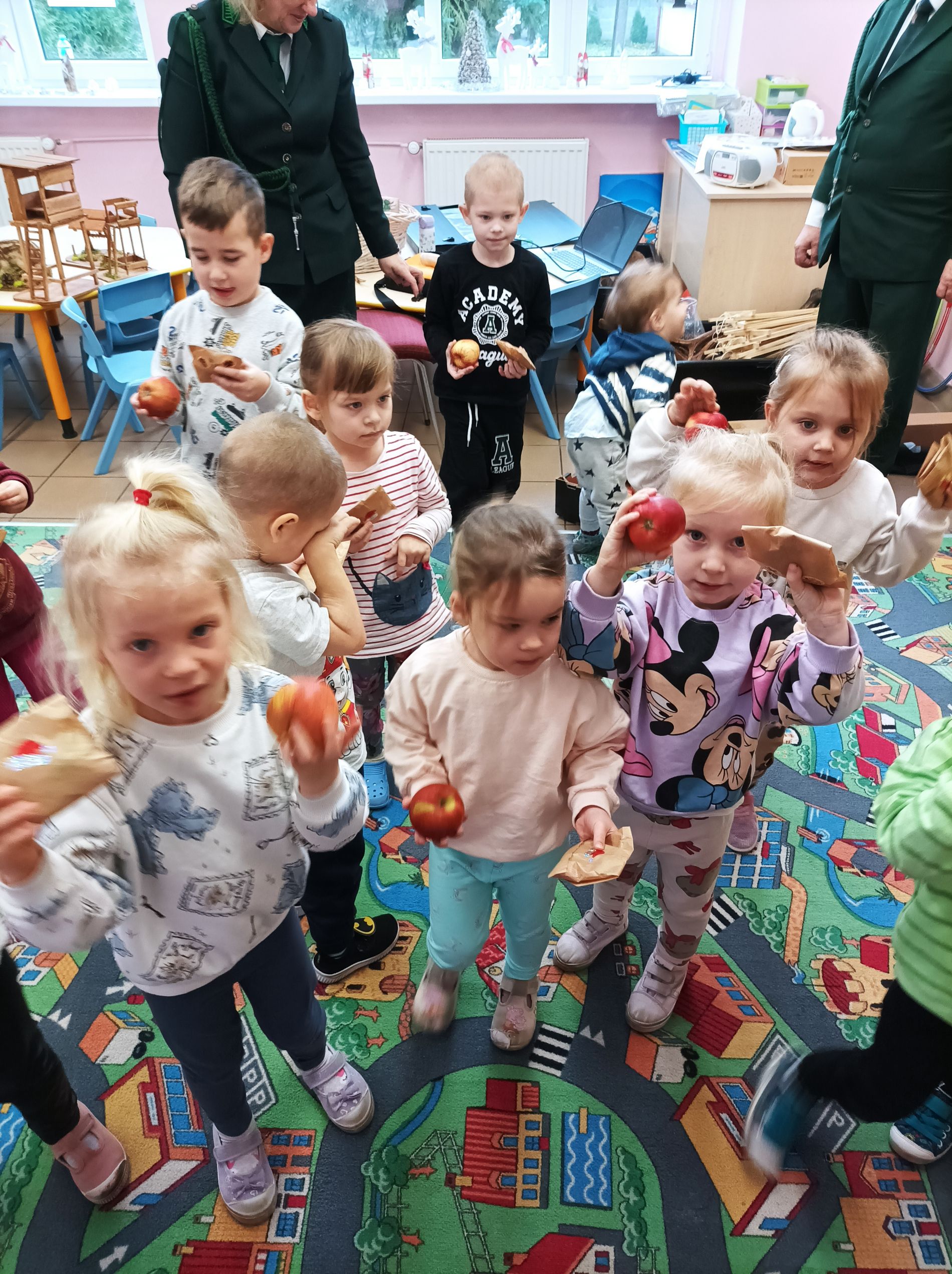 Za aktywny udział w zajęciach każdy przedszkolak otrzymał słodki upominek oraz jabłko, a grupy – pamiątkowe dyplomy.